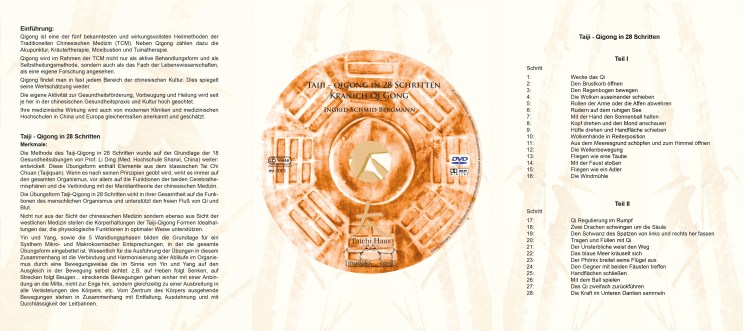 DVD | Taichi Qi Gong in 28 Schritten | Lehrgang zum Selbststudium mit Musik (stumm schaltbar) mit Erklärung während der Übungs Praxis | Neuauflage | Teil I und II | Kranich Qi Gong Teil I bis V | mit Ingrid Schmid Bergmann | 16:9 PAL / dolby digital / 71 min. / mit Textteil Einführung | Musik und Sprache getrennt anwählbar. Neuauflage 3 Seitige DVD Verpackung als hardcover mit Text integriert